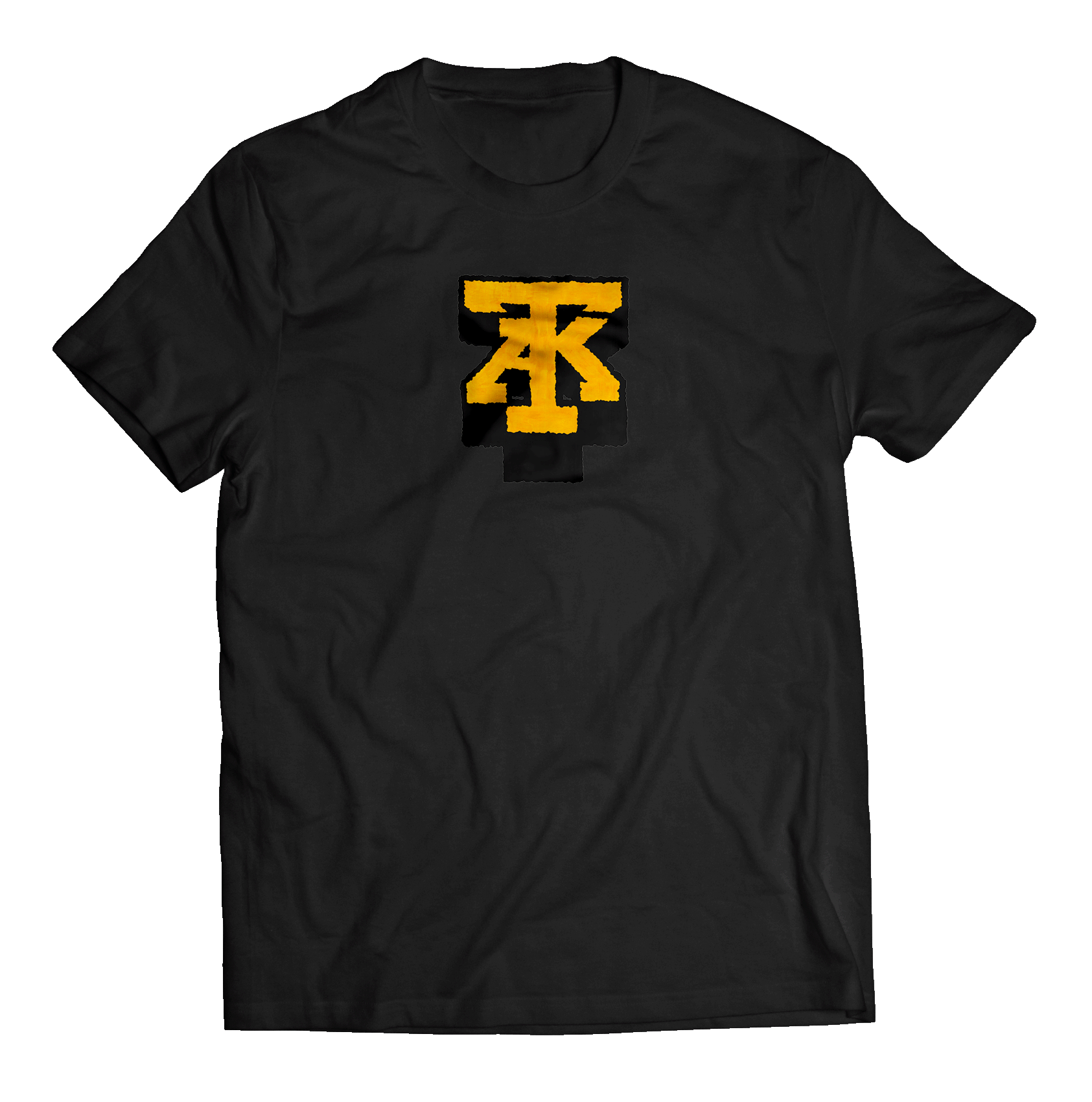 T-shirt TAK prod Yellow Logo Artwork by JBROCK Stampa in serigrafia a 2 colori sul fronte Maglia Nera 100% Cottone